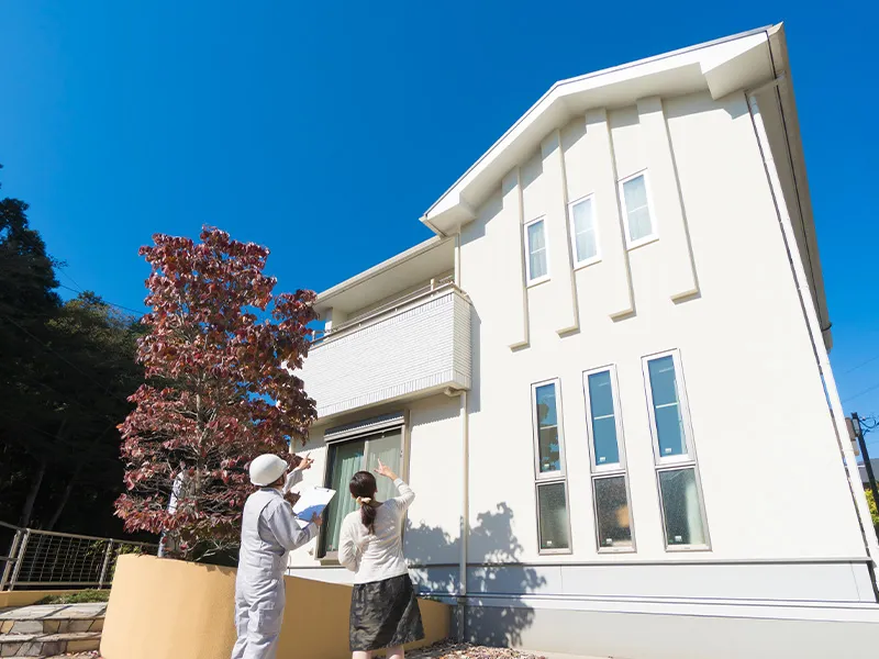 料金について外壁塗装(30坪目安)屋根塗装(30坪目安)足場工事 料金について ※すべて税抜価格です。 ※保証期間については、塗料や施工内容に応じてご案内いたします。※屋根の施工費用は材質によって価格が異なります。 外壁塗装(30坪目安) ラジカルプラン(外壁のみ) 300,000円~ 対応目安:5年施工箇所:外壁のみ対応範囲:足場工事、高圧洗浄、養生、下塗り、中塗り、上塗り保証期間:最大5年 フッ素プラン(外壁のみ) 400,000円~ 対応目安:8年施工箇所:外壁のみ対応範囲:足場工事、高圧洗浄、養生、下塗り、中塗り、上塗り保証期間:最大8年 無機塗料プラン(外壁のみ) 500,000円~ 対応目安:10年施工箇所:外壁のみ対応範囲:足場工事、高圧洗浄、養生、下塗り、中塗り、上塗り保証期間:最大10年 屋根塗装(30坪目安) ラジカルプラン(屋根のみ) 300,000円~ 対応目安:5年施工箇所:屋根のみ対応範囲:足場工事、高圧洗浄、養生、下塗り、中塗り、上塗り保証期間:最大5年 フッ素プラン(屋根のみ) 400,000円~ 対応目安:8年施工箇所:屋根のみ対応範囲:足場工事、高圧洗浄、養生、下塗り、中塗り、上塗り保証期間:最大8年 無機塗料プラン(屋根のみ) 500,000円~ 対応目安:10年施工箇所:屋根のみ対応範囲:足場工事、高圧洗浄、養生、下塗り、中塗り、上塗り保証期間:最大10年 足場工事 架け払い工事 1㎡あたり650円 メッシュ 1㎡あたり150円